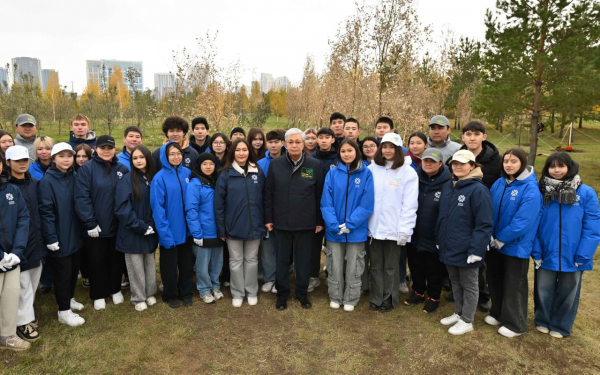 Президент совместно с волонтёрами и экоактивистами принял участие в посадке деревьев на территории столичного Ботанического сада.