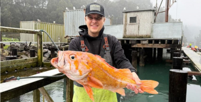 Житель Северной Калифорнии, 26-летний рыбак Брендан Уолш из округа Мендосино, поймал необычайно крупного канареечно ...
